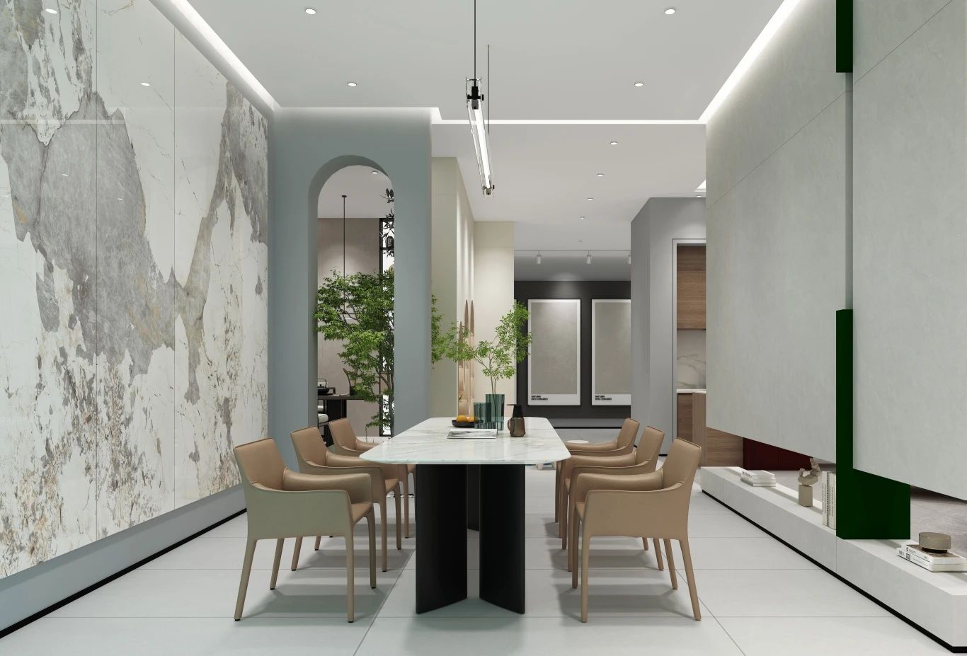 德田陶瓷有著二十余載的歲月沉淀,將歷史底蘊(yùn)結(jié)合現(xiàn)代新中式趨勢,運(yùn)用于SI形象展廳設(shè)計中,不僅展現(xiàn)了老品牌獨具匠心、嚴(yán)謹(jǐn)細(xì)致的品牌精神,也為展廳空間注入更多時尚化年輕化藝術(shù)化的美感,奠定品牌未來發(fā)展基調(diào),滿足新時代人類的消費需求。